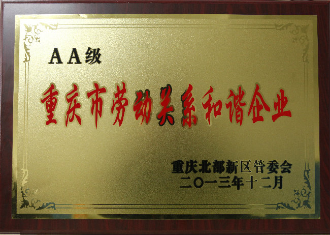 2013AA級重慶市勞動關系和諧企業